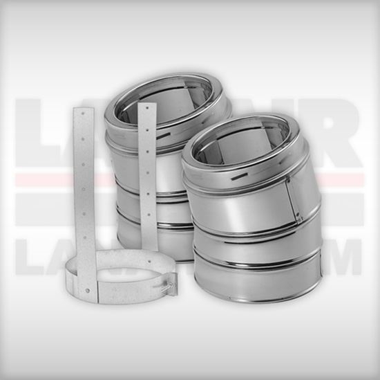 Insulated Chimney 30° Elbow X 8″ Dia. With SS inner liner Galvalume outer casing. Comatible with DuraVent brand only. Includes 2 elbows and 1 elbow strap.